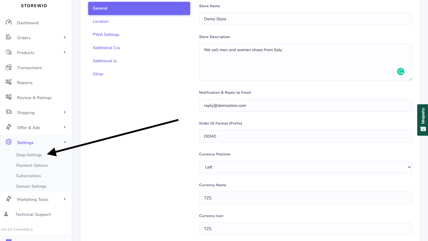 For the sake of clarity and easy understanding, I will be using a demo store (demo.storewid.com)