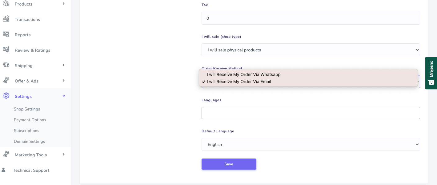 On the left side on the settings menu chosen Shop settings see the image below